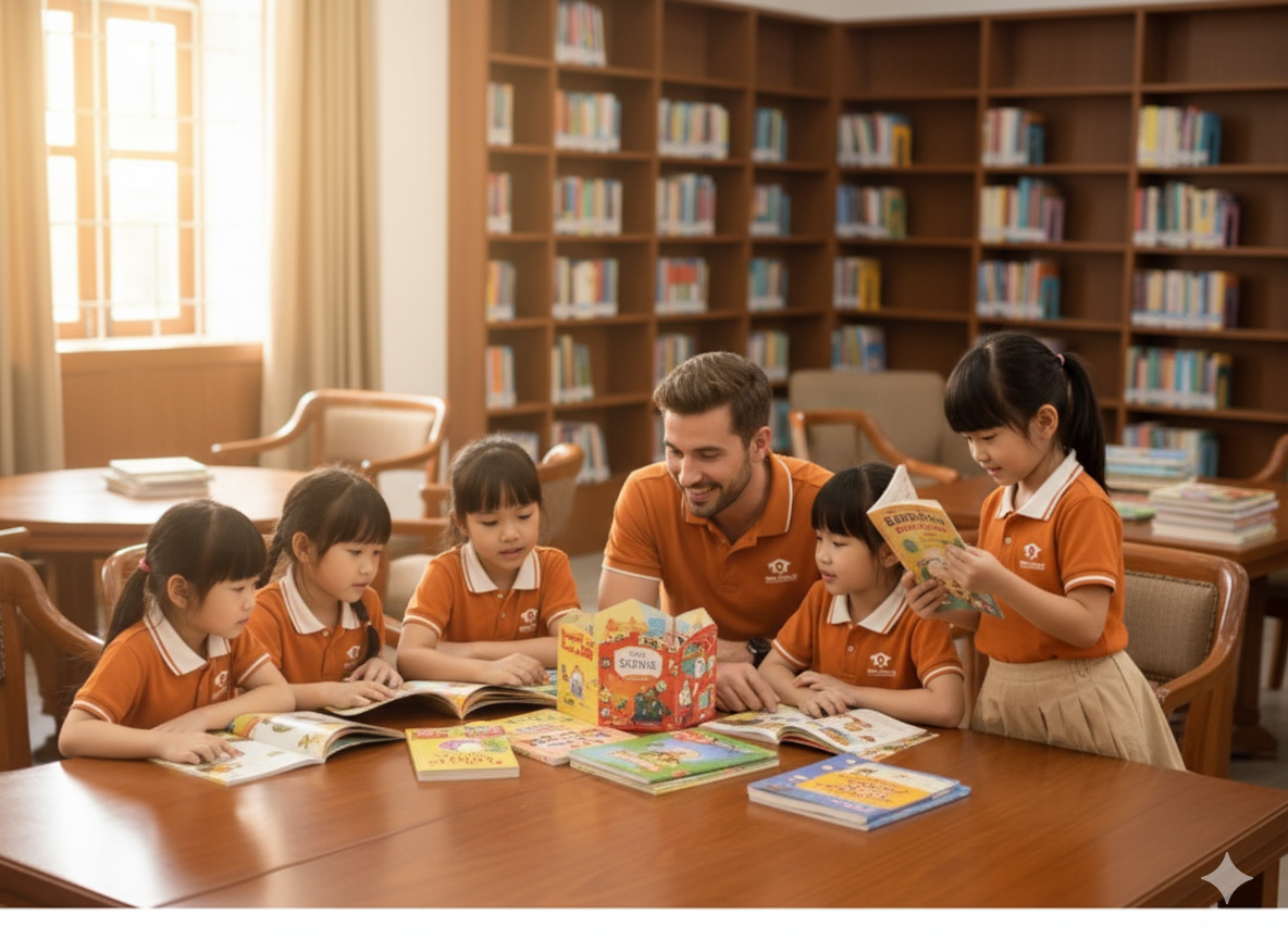 Ngoài các hoạt động học thuật, chương trình còn tổ chức Book Quiz, Storytelling Challenge, Creative Bookmark Workshop, tạo không gian vừa học vừa chơi. Tiếng cười, sự hào hứng và niềm tự hào khi chia sẻ cuốn sách yêu thích đã giúp học viên duy trì thói quen đọc sách bền vững và yêu tiếng Anh hơn.