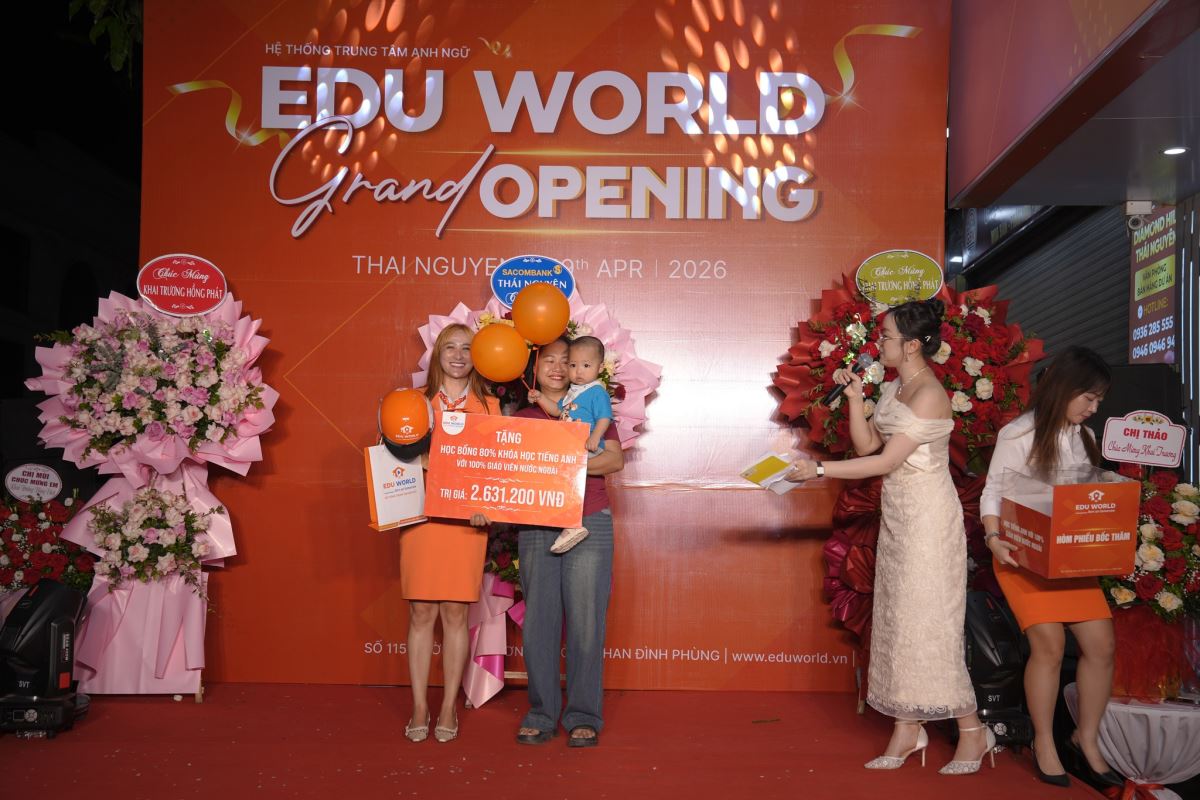 🌟 Lễ khai trương đã diễn ra thành công tốt đẹp, đánh dấu sự khởi đầu cho hành trình Edu World đồng hành cùng thế hệ học sinh Thái Nguyên trên con đường chinh phục tiếng Anh và hội nhập quốc tế. Edu World tin rằng, với nền tảng vững chắc và định hướng giáo dục hiện đại, mỗi học sinh sẽ được trao cơ hội phát triển tối đa tiềm năng của mình.