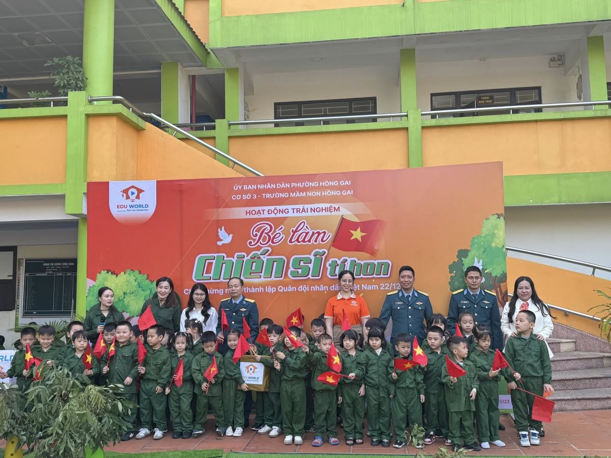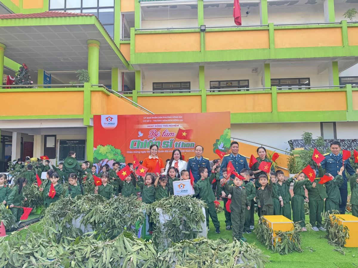 Hòa chung không khí thiêng liêng và tự hào nhân dịp kỷ niệm Ngày thành lập Quân đội Nhân dân Việt Nam, Edu World đã tổ chức hoạt động trải nghiệm đặc biệt dành cho các em học sinh – nơi các con được hóa thân thành những “chiến sĩ nhí” đầy tự tin, bản lĩnh và vô cùng đáng yêu.