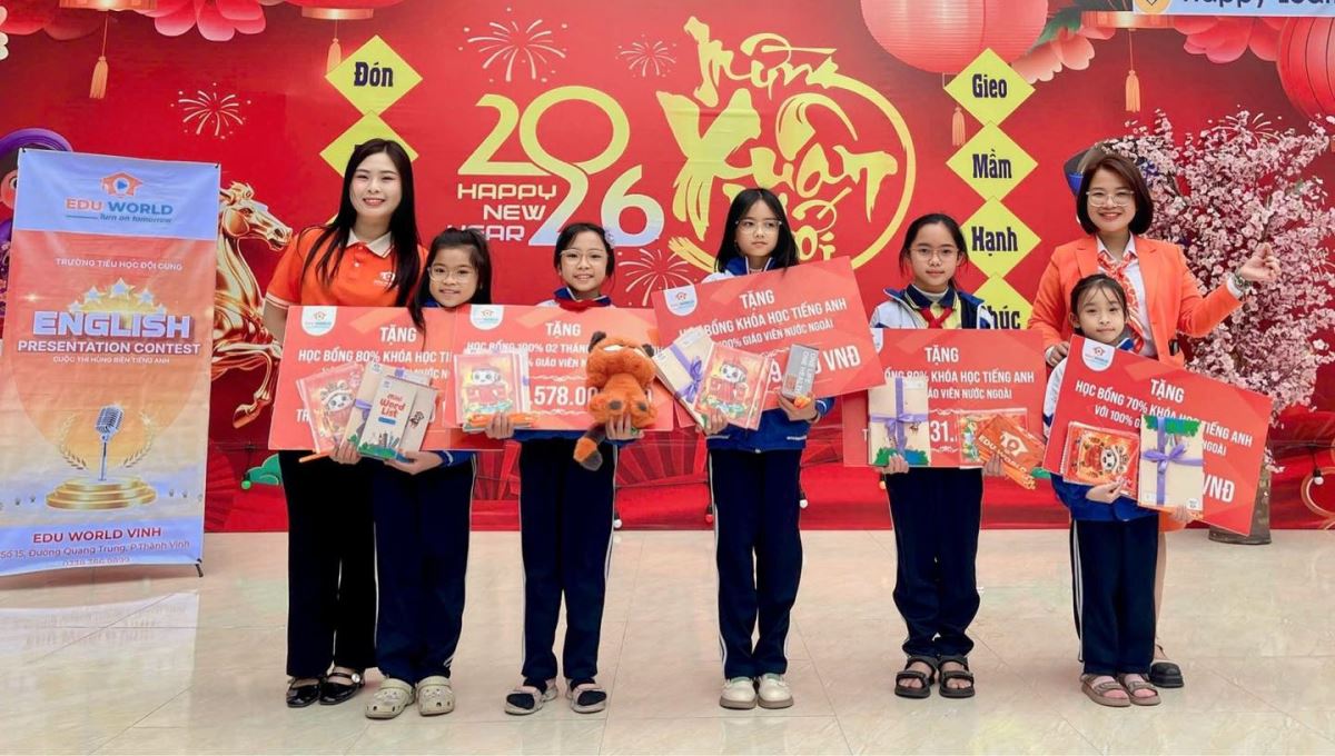 Trong khuôn khổ chương trình, học sinh được tham gia các mini game tiếng Anh theo chủ đề Tết được thiết kế sinh động, giúp ôn luyện từ vựng và nâng cao khả năng phản xạ ngôn ngữ thông qua hình thức “vừa học – vừa chơi”. Bên cạnh đó, các em còn có cơ hội trải nghiệm mô hình học tập tích hợp công nghệ AI hiện đại do Edu World triển khai, qua đó tiếp cận phương pháp học tiếng Anh thông minh, cá nhân hóa lộ trình và tối ưu hiệu quả tiếp thu.