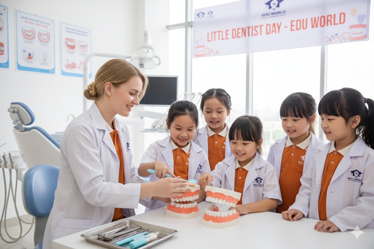 Đặc biệt, Edu World phối hợp cùng phòng khám nha khoa đối tác uy tín, đảm bảo toàn bộ hoạt động được thực hiện dưới sự giám sát và hướng dẫn chuyên môn của đội ngũ bác sĩ nha khoa giàu kinh nghiệm. Sự kết hợp này giúp học viên được tiếp cận kiến thức y khoa thực tế, đồng thời củng cố vốn tiếng Anh chuyên ngành một cách tự nhiên và sinh động.